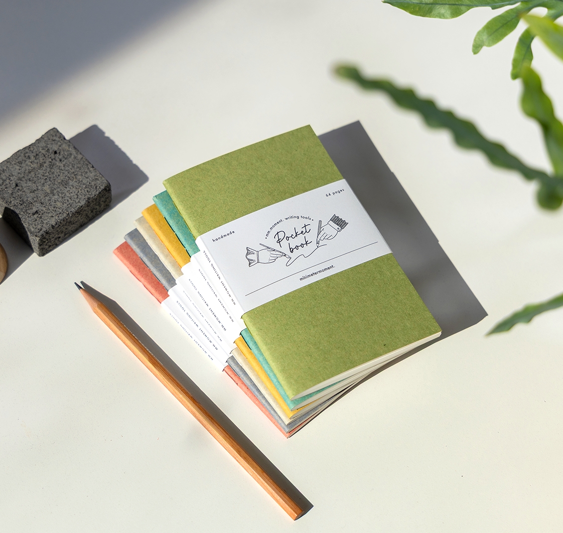 Pocket Book은 그런 순간을 놓치지 않도록 손에 쥐기 좋은 크기와 부담 없는 무게로 만든 밀리미터모먼트의 포켓 사이즈 노트입니다.