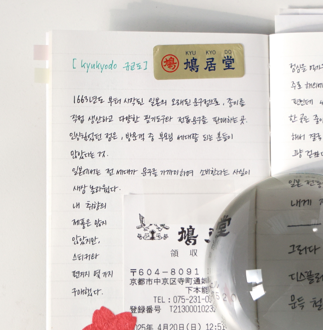 여행이 끝나고 돌아온 후, 이 노트를 다시 펼쳐보면 사진보다 더 생생하게 떠오르는 장면들이 분명히 있을 거예요. 눈으로만 담았던 기억들이, 손으로 옮겨 쓴 글과 붙인 조각들을 통해 더 오래, 또렷하게 남아 있게 됩니다.