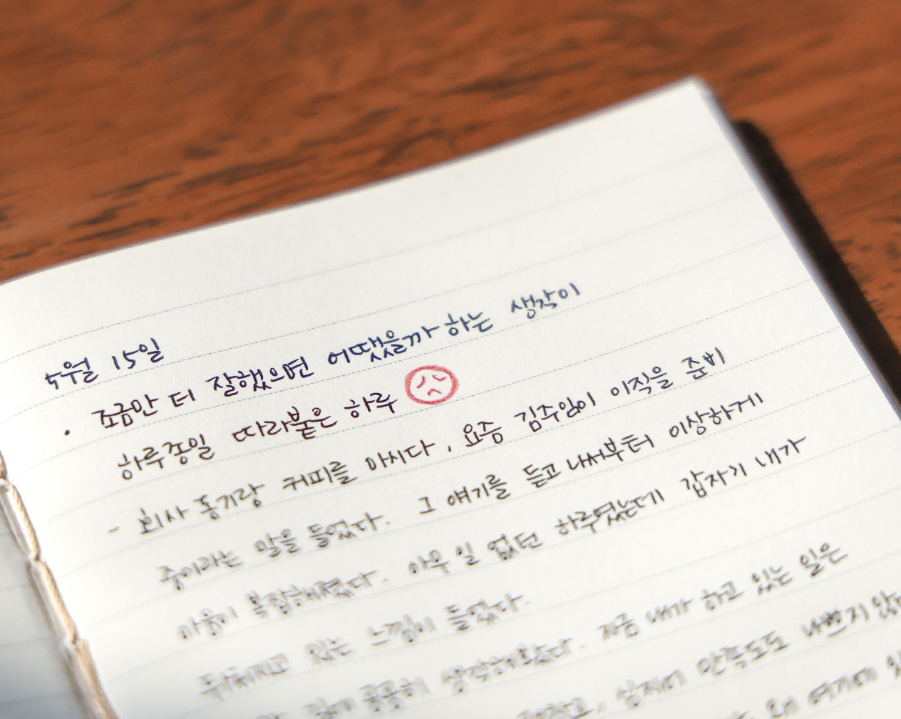 1. 오늘의 날짜 옆에, 지금 기분에 어울리는 표정을 하나 그려보세요. 😊 😐 😔 같은 이모지나 간단한 그림도 괜찮습니다. 글보다 그림이 먼저인 날도 있는 법이니까요.