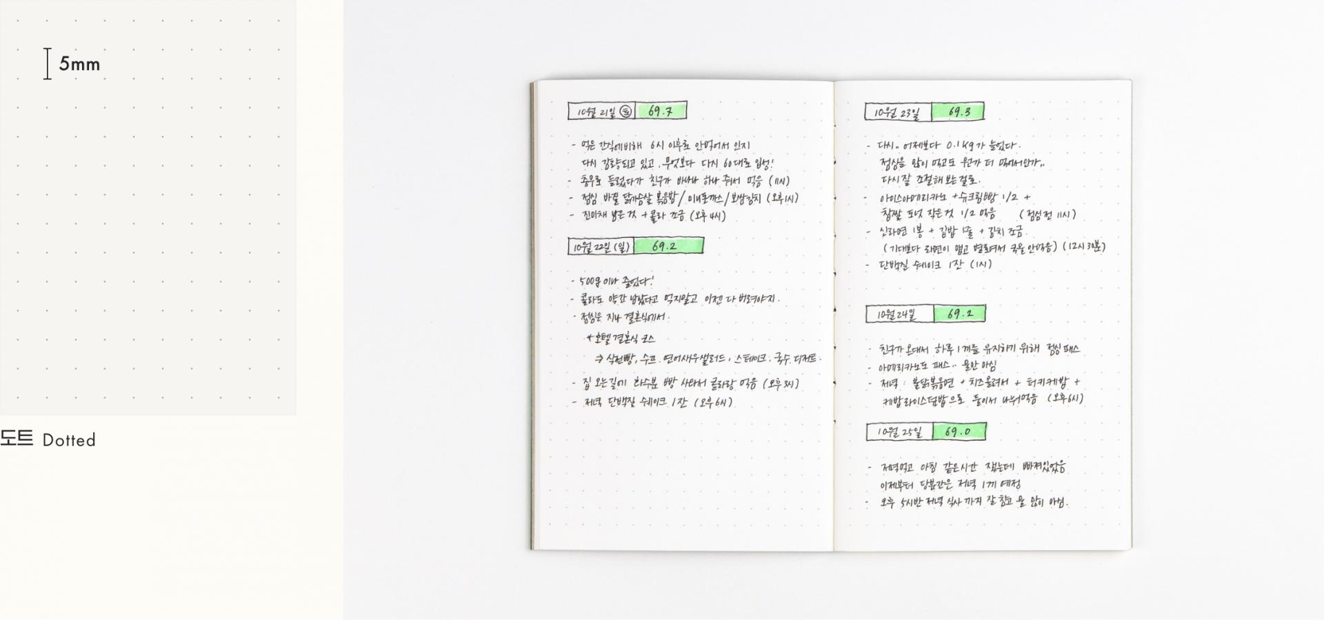 - 한손에 쏙 들어오는 포켓사이즈의 노트입니다.
