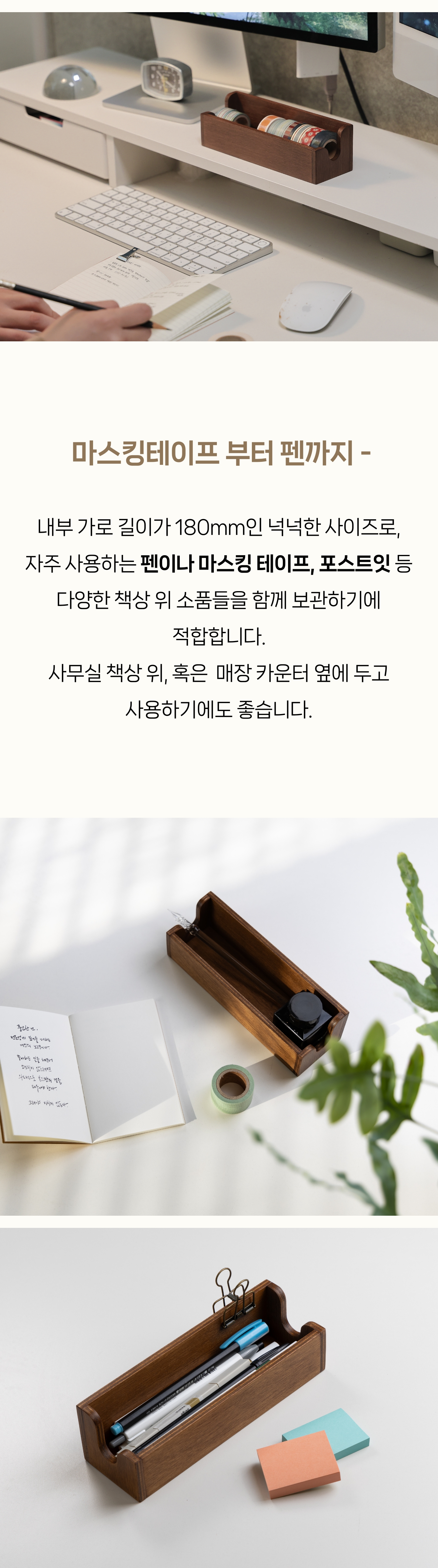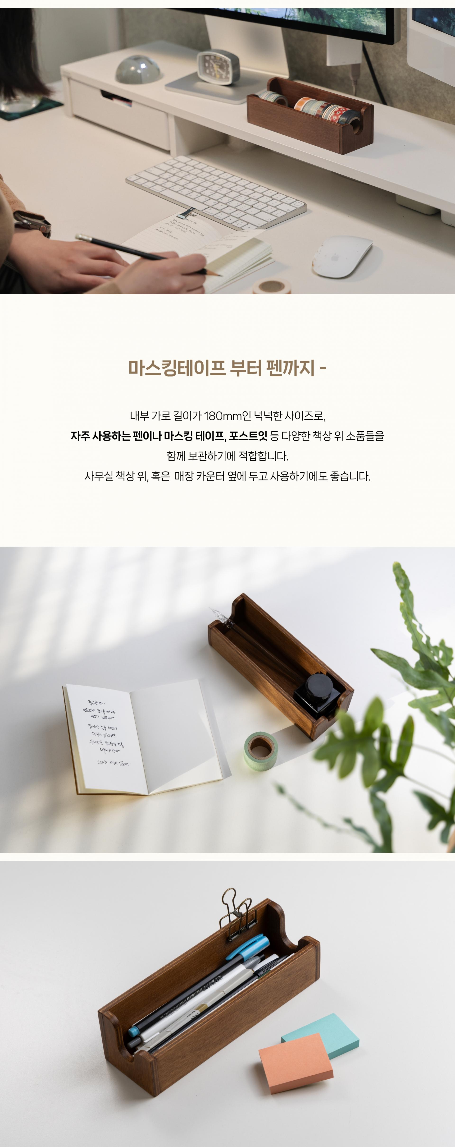 - 펜, 연필, 메모지, 마스킹테이프 등 책상 위 작은 소품을 담아 보관 가능