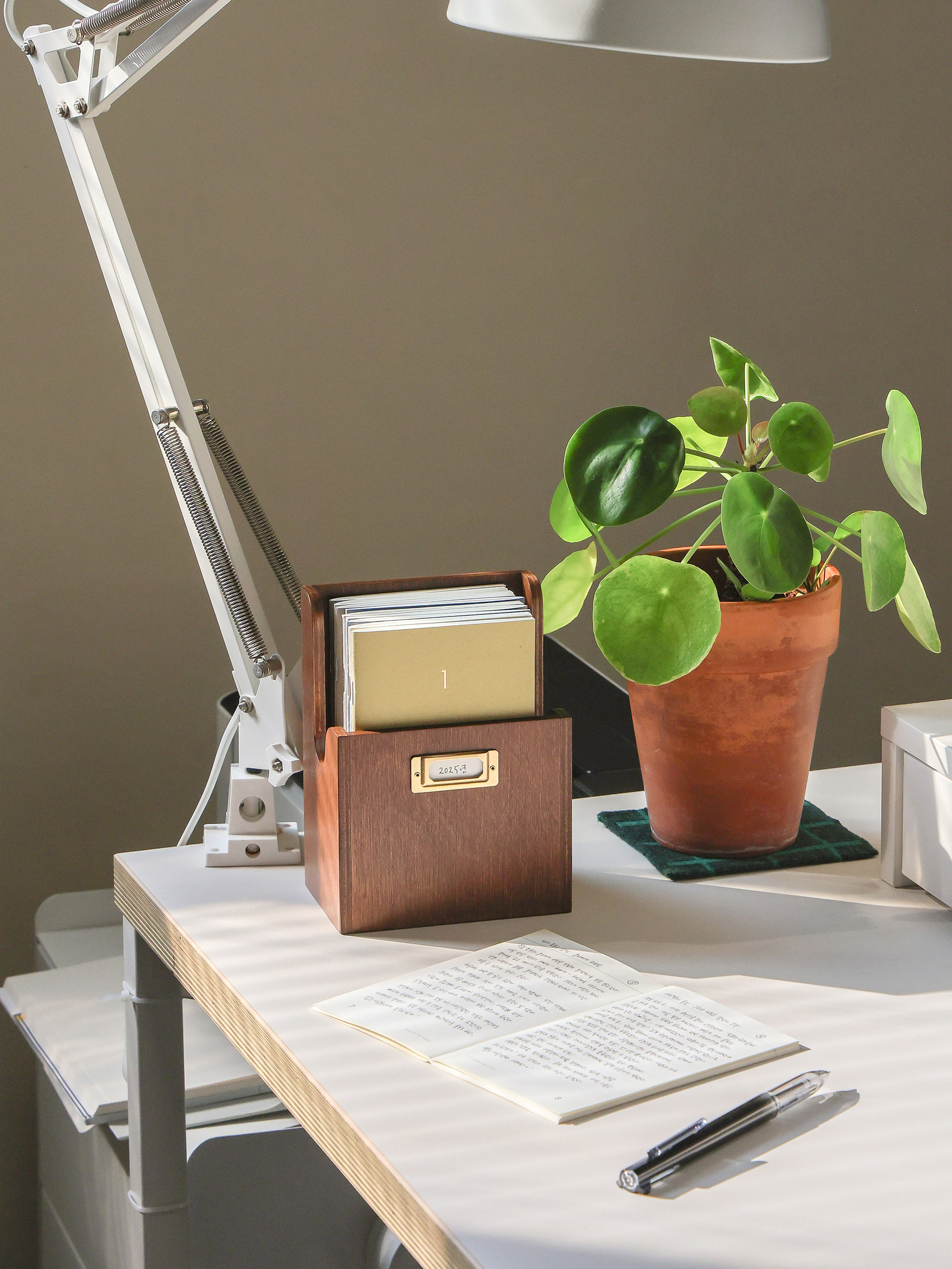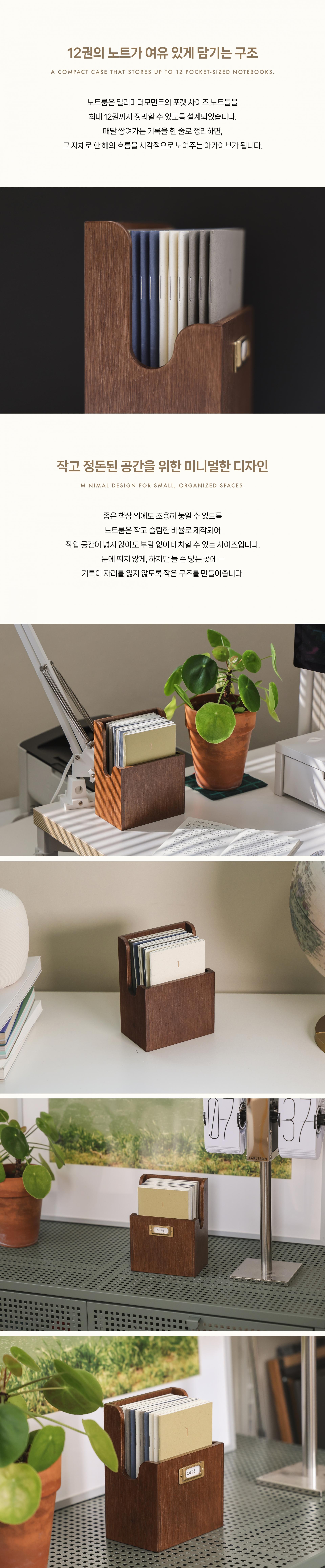 - 작은 노트들을 보관할 수 있는 원목 노트 보관함 입니다.